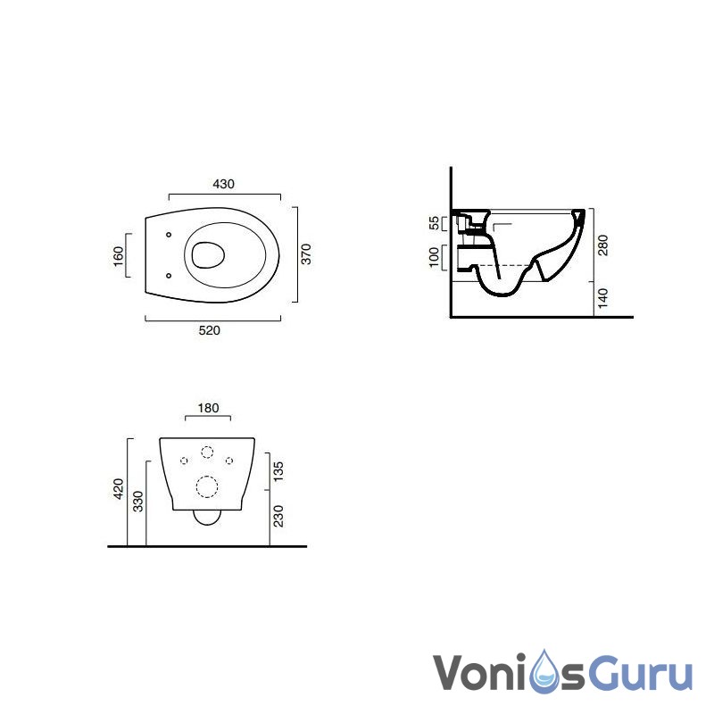 07 1152 0001 ITALY 52 NEWFLUSH, pakabinamas klozetas su tvirtinimais, su lėtaeigiu dangčiu.
