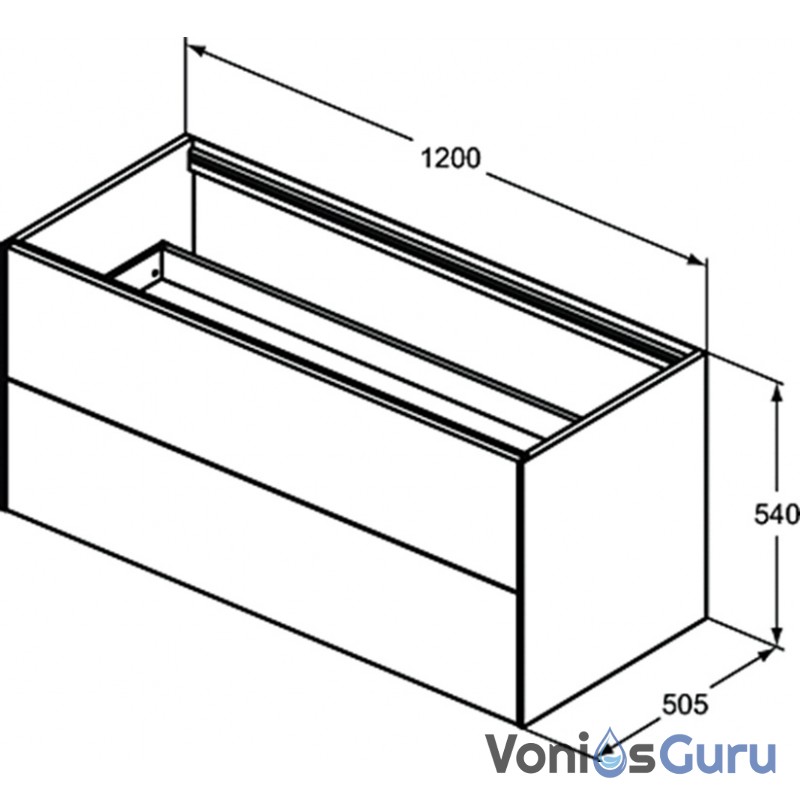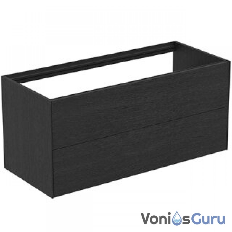 Ideal Standard Conca pakabinama spintelė 120 cm (1200 x 505 x 550 mm), du stalčiai, push to open, soft close uždarymas, be spalviršio. Spalvos: degintas ažuolas