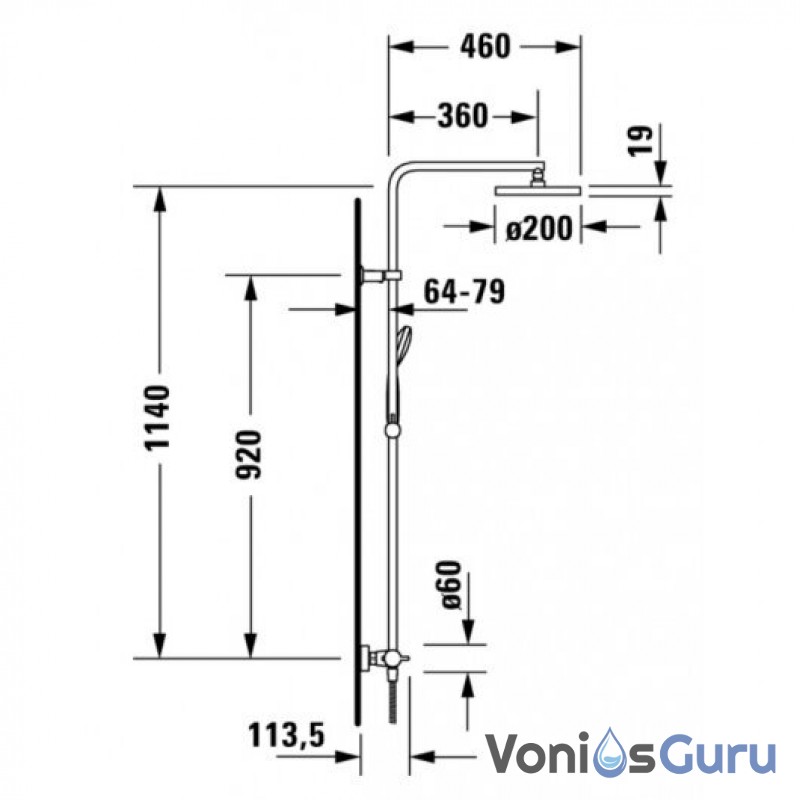 Žymės: Dušo sistema su termostatiniu maišytuvu Duravit B.2, chromas B24280008010, B24280008010, Virštinkinės dušo sistemos