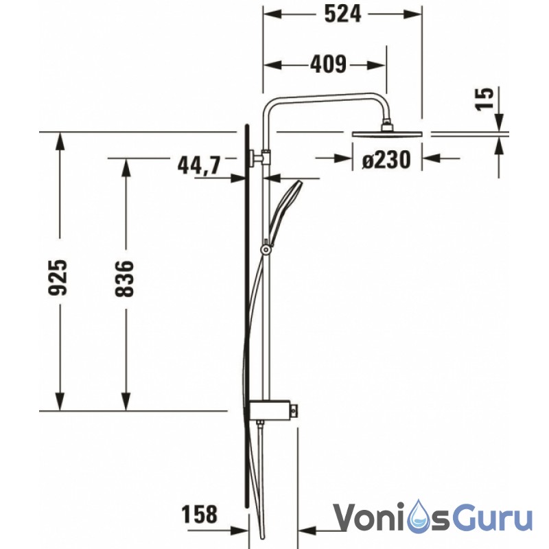 • Dušo galva: 1 Jet; Ø230 mm