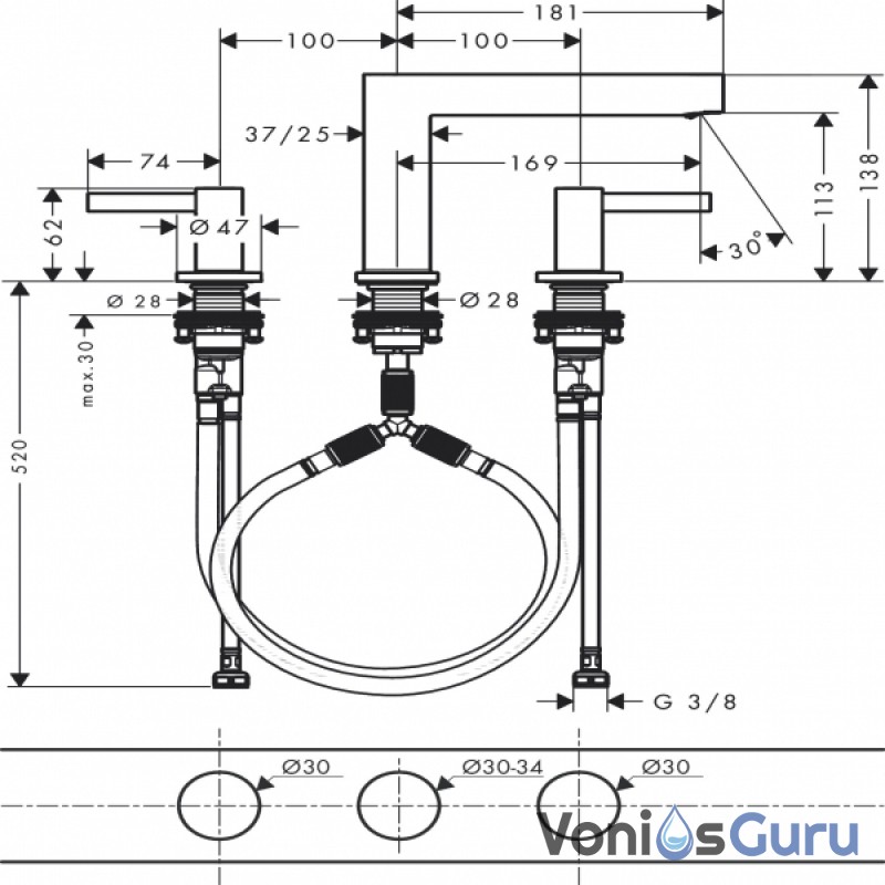 Žymės: Finoris 110 3-jų dalių praustuvo maišytuvas su push-open, matinis juodas, 76033670, Maišytuvai montuojami į vonios kraštą