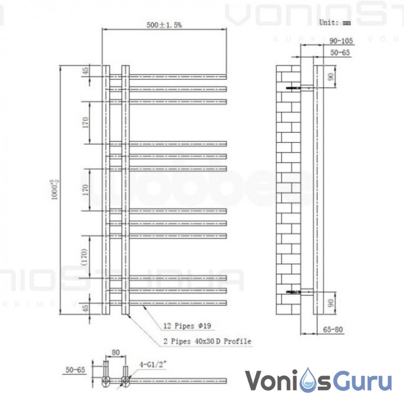 - Išmatavimai: plotis 500mm x aukštis 1000mm.