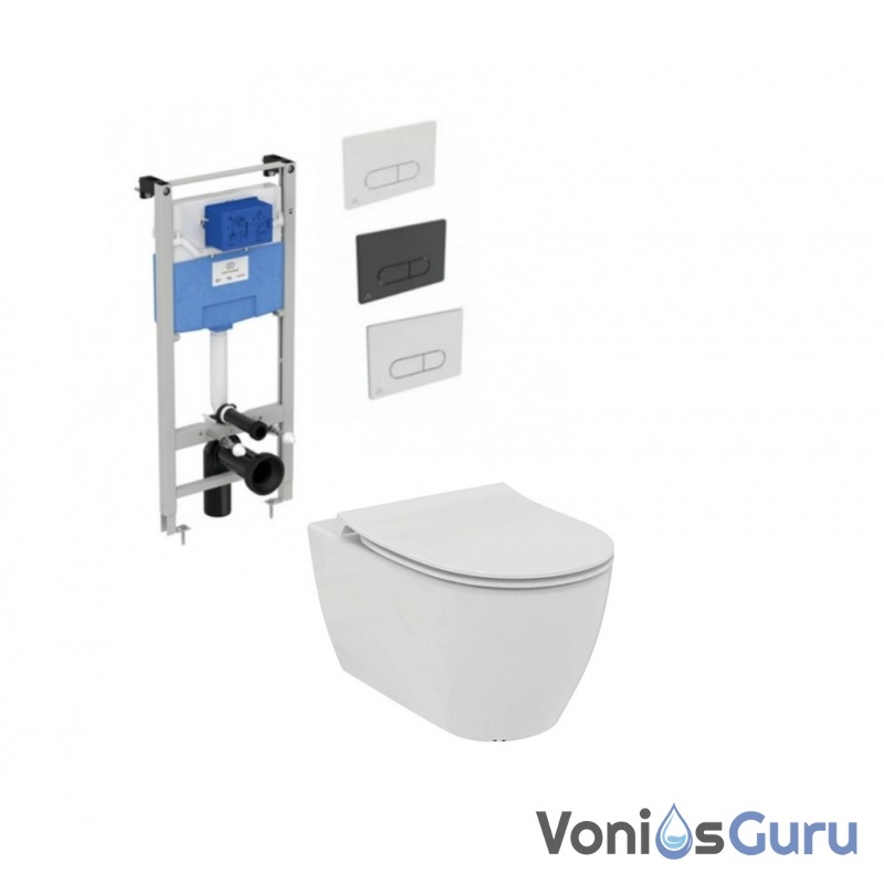 Žymės: Ideal Standard Pro Sys 120 potinkinis rėmas su Oleas M1 mygtuku (spalvų pasirinkimas) iri.Life O, sūkurinis klozetu su lėtaeigiu dangčiu, T533001+R020467+R0115A, Klozetai ir rėmai