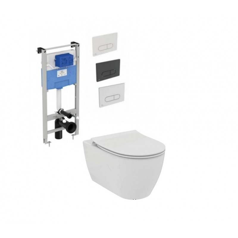 Ideal Standard Pro Sys 120 potinkinis rėmas su Oleas M1 mygtuku (spalvų pasirinkimas) iri.Life O, sūkurinis klozetu su lėtaeigiu dangčiu