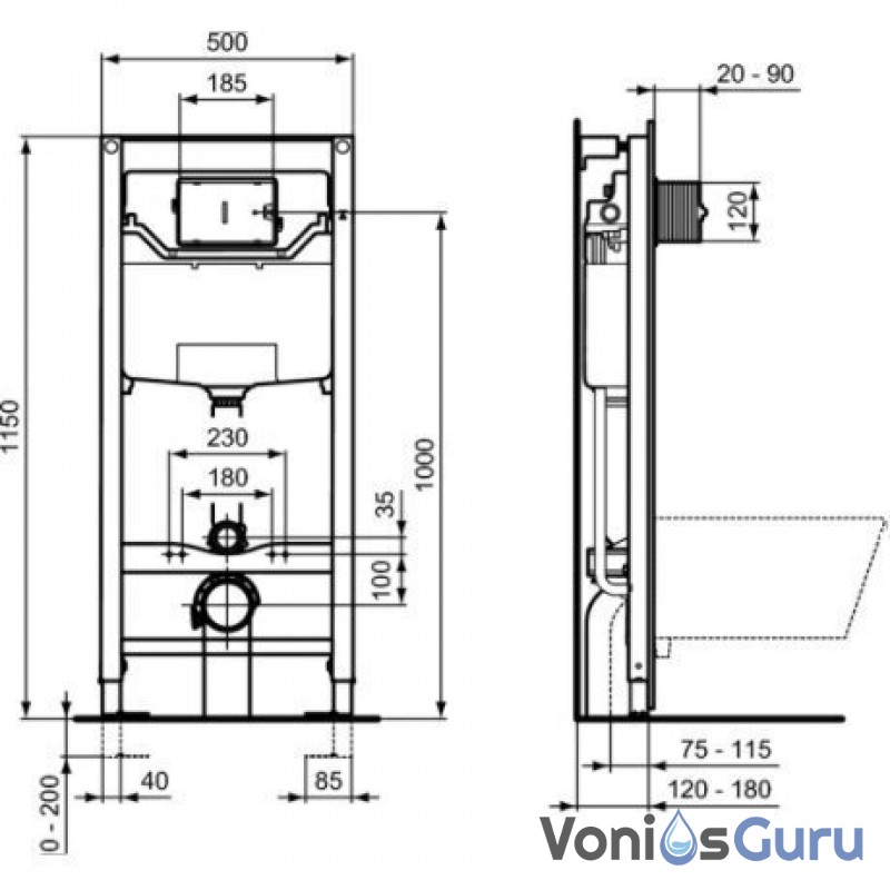 Ideal Standard Prosys 120 potinkinis rėmas su Oleas M2 mygtuku ir pakabinamas klozetas Villeroy&Boch Architectura su TwistFlush[e3] su soft close dangčiu.