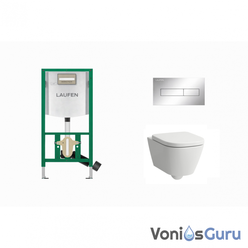 Laufen WC rėmas INEO su Horizon klavišu ir MEDA pakabinamu unitazu