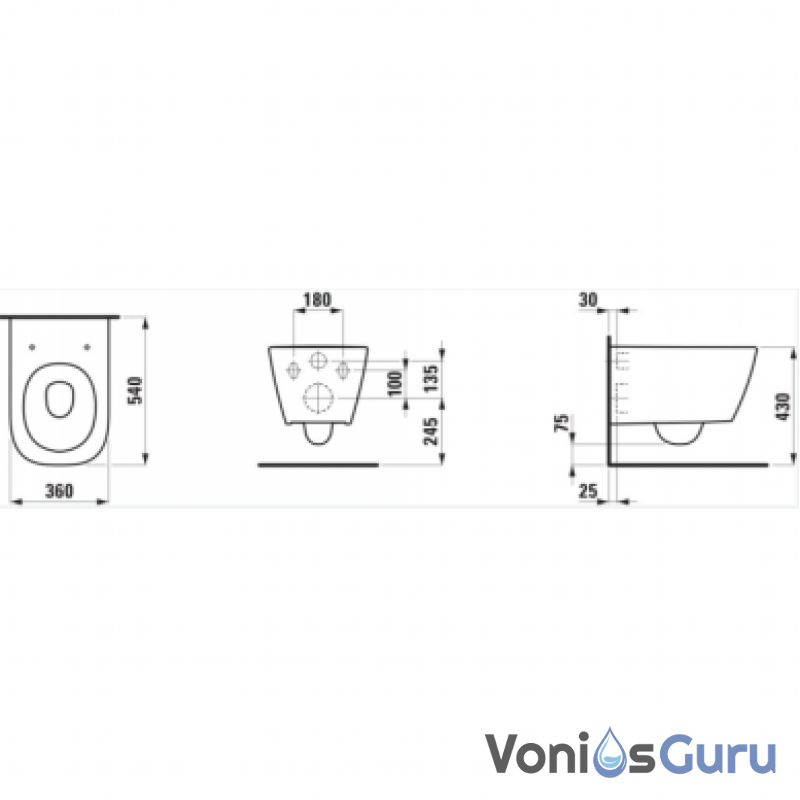 - Unitazo tipas: pakabinamas, be apvado (rimless)