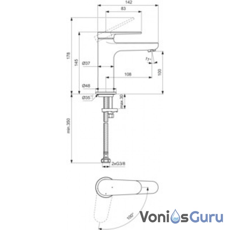 Žymės: Maišytuvas praustuvui Ideal Standard Cerfine Nuovo juodas matinis, BD768XG, Maišytuvai praustuvui