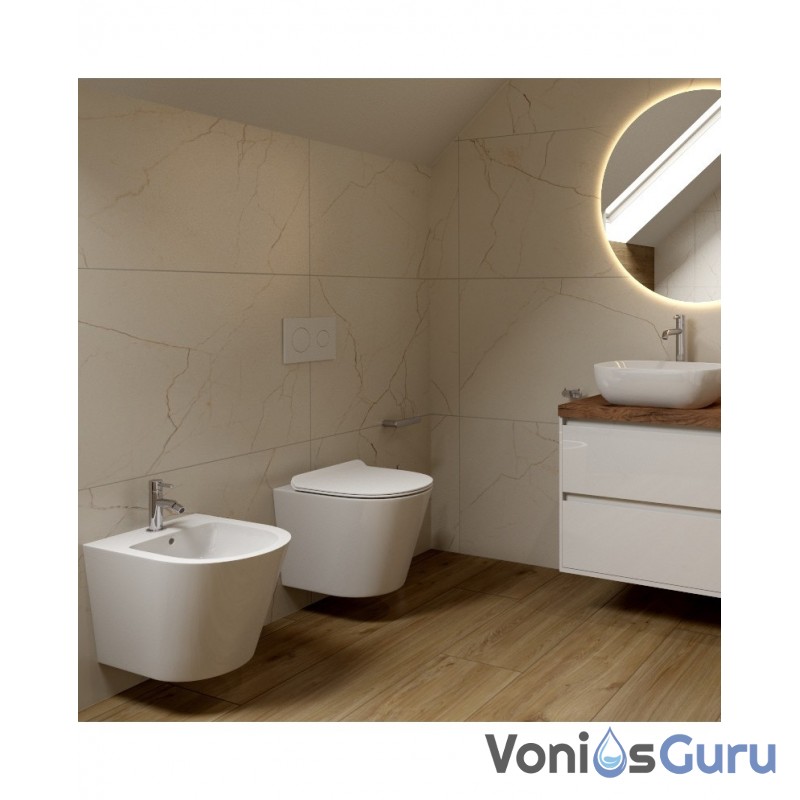 Komplekte lėtai nusileidžiantis Soft close, lengvai nuimamas dangtis.