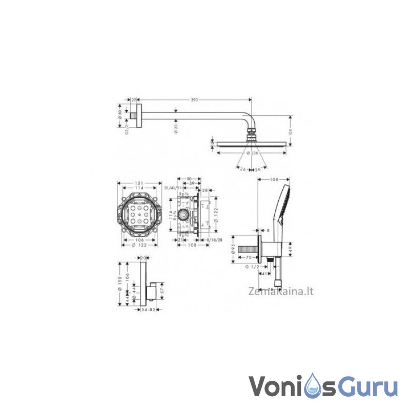 Potinkinis termostatinis dušo 7 in 1 komplektas HANSGROHE Raindance S, 27951000