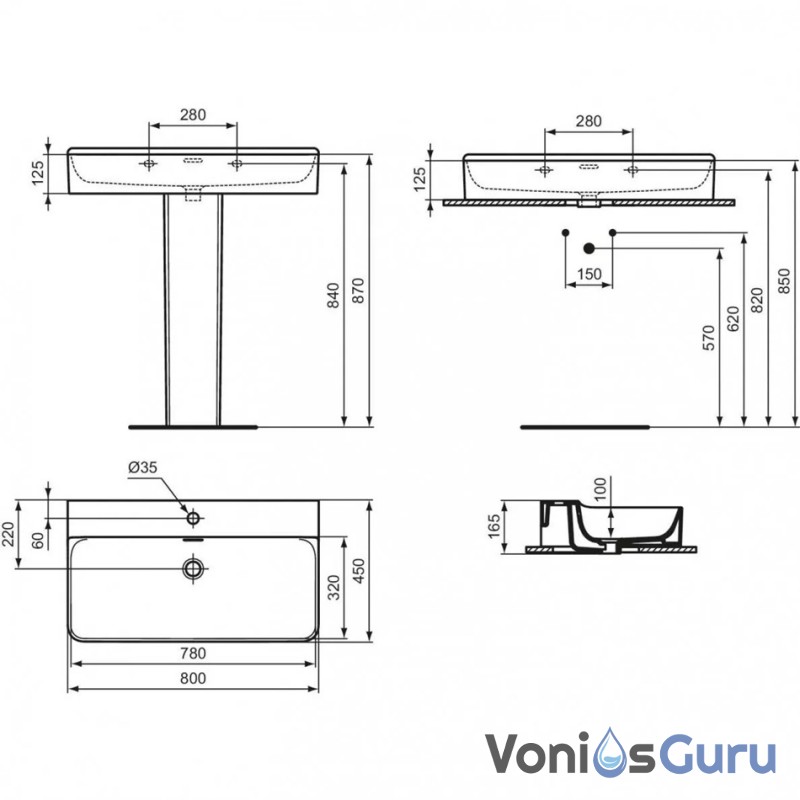 Žymės: Praustuvas Ideal Standard Conca 80 cm, baltas T382601, T382601, Pakabinami praustuvai