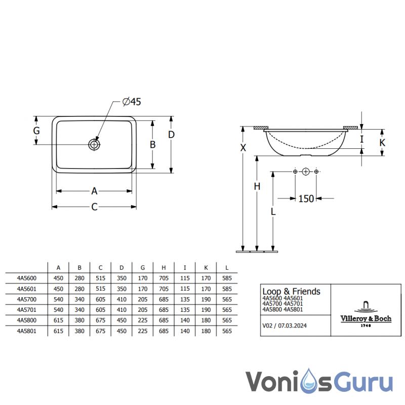 - Straipsnio pavadinimas „Loop & Friends“ po stalviršiu montuojamas praustuvas, 450 x 280 x 170 mm, su perpildymo anga, išorinis paviršius glazūruotas