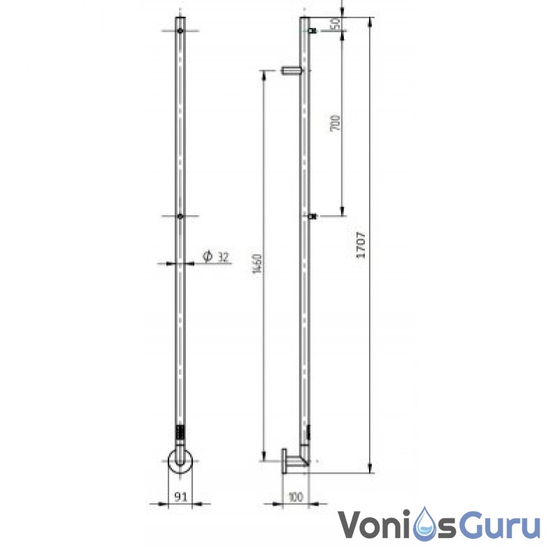 Elektrinis rankšluosčių džiovintuvas PMH Ole 10x170,8 cm, nerūdijantis plienas, OL1SS