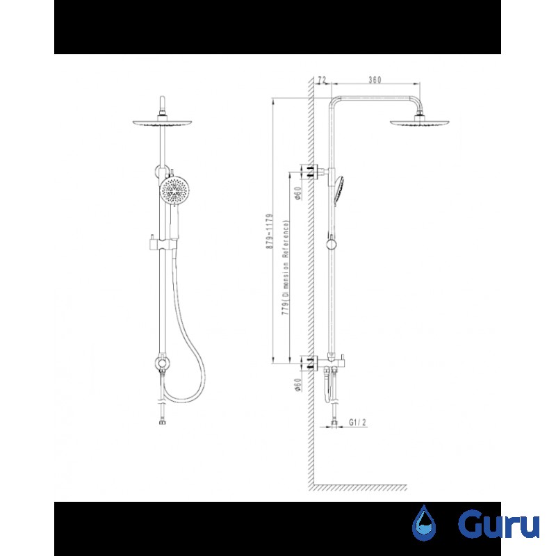 Žymės: Virštinkinė termostatinė dušo sistema Hansgrohe Ecostat Orion, 5900378346159+13211000, Dušo sistemos
